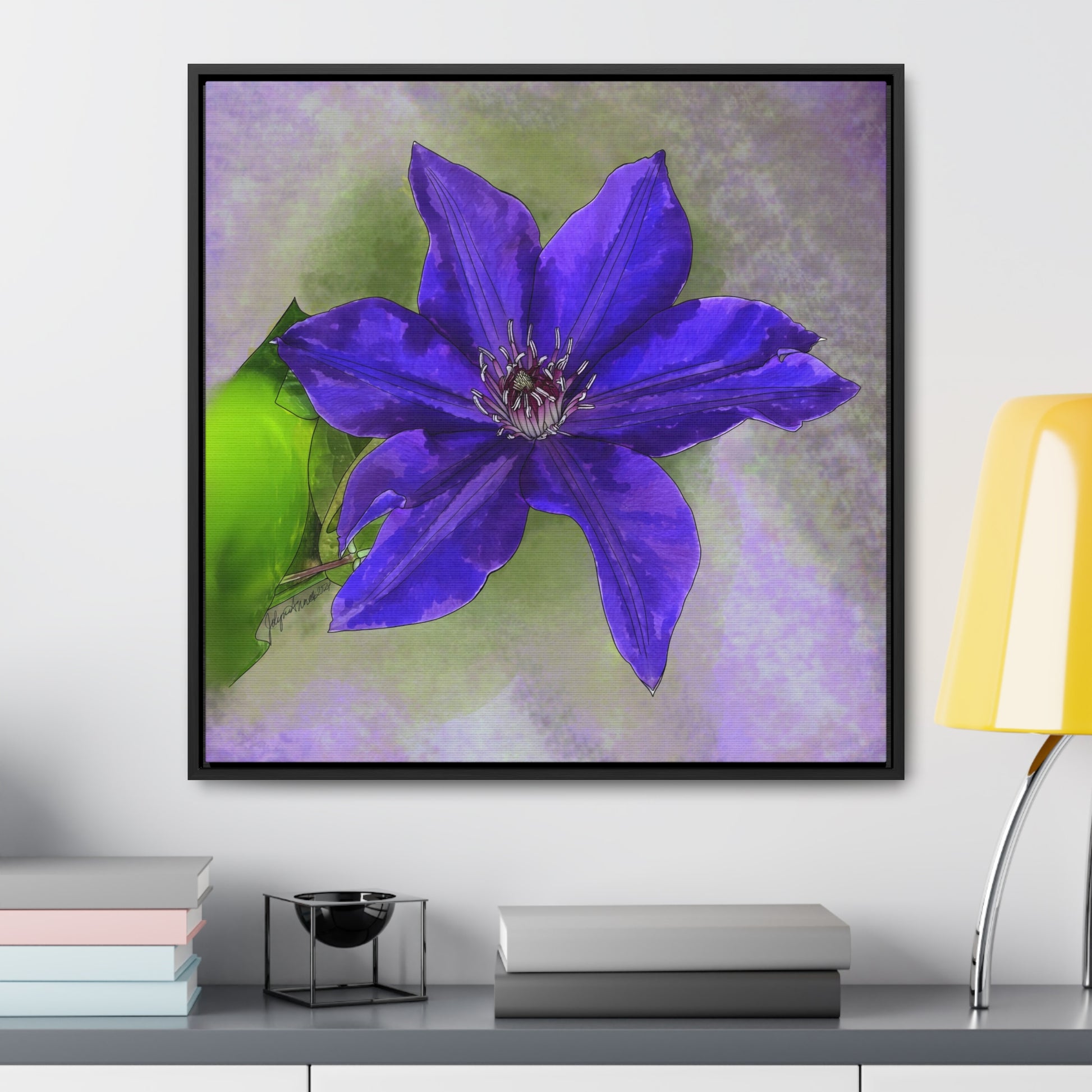 Purple Clematis - Original Art - Gallery Canvas Wraps, Square Frame